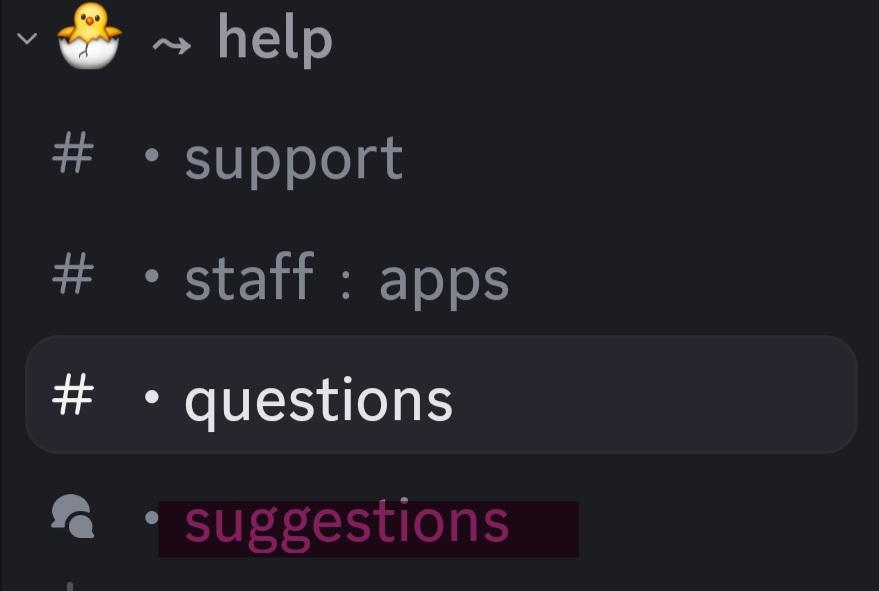 Step 1: Head to the help category and click the suggestions channel